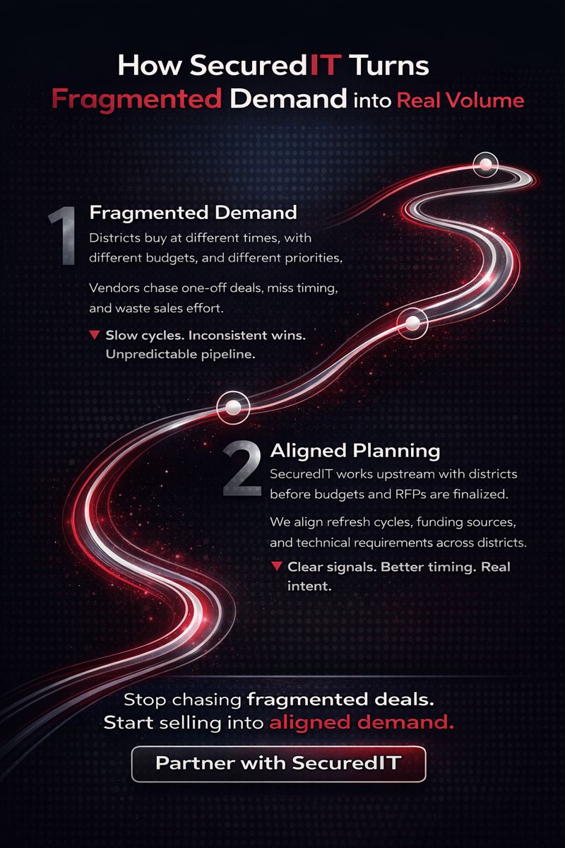 SecuredIT’s services are provided at no cost to your organization. We operate on a vendor-funded model: compensation is paid by the seller only after a transaction is finalized, ensuring our work remains budget-neutral and entirely outside the scope of your contract. By prioritizing transaction volume rather than maximizing margin on any single deal, our incentives are aligned with your procurement goals, delivering better pricing and predictable outcomes across many transactions.